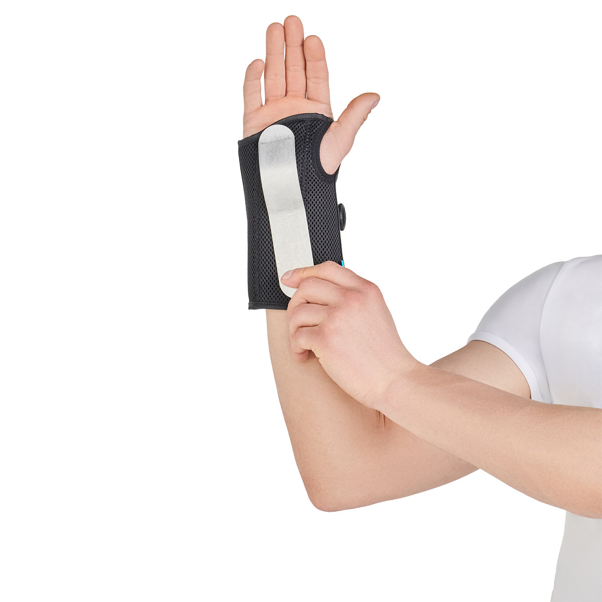 • Премоделированная алюминиевая шина по ладонной поверхности для надежной стабилизации сустава.
